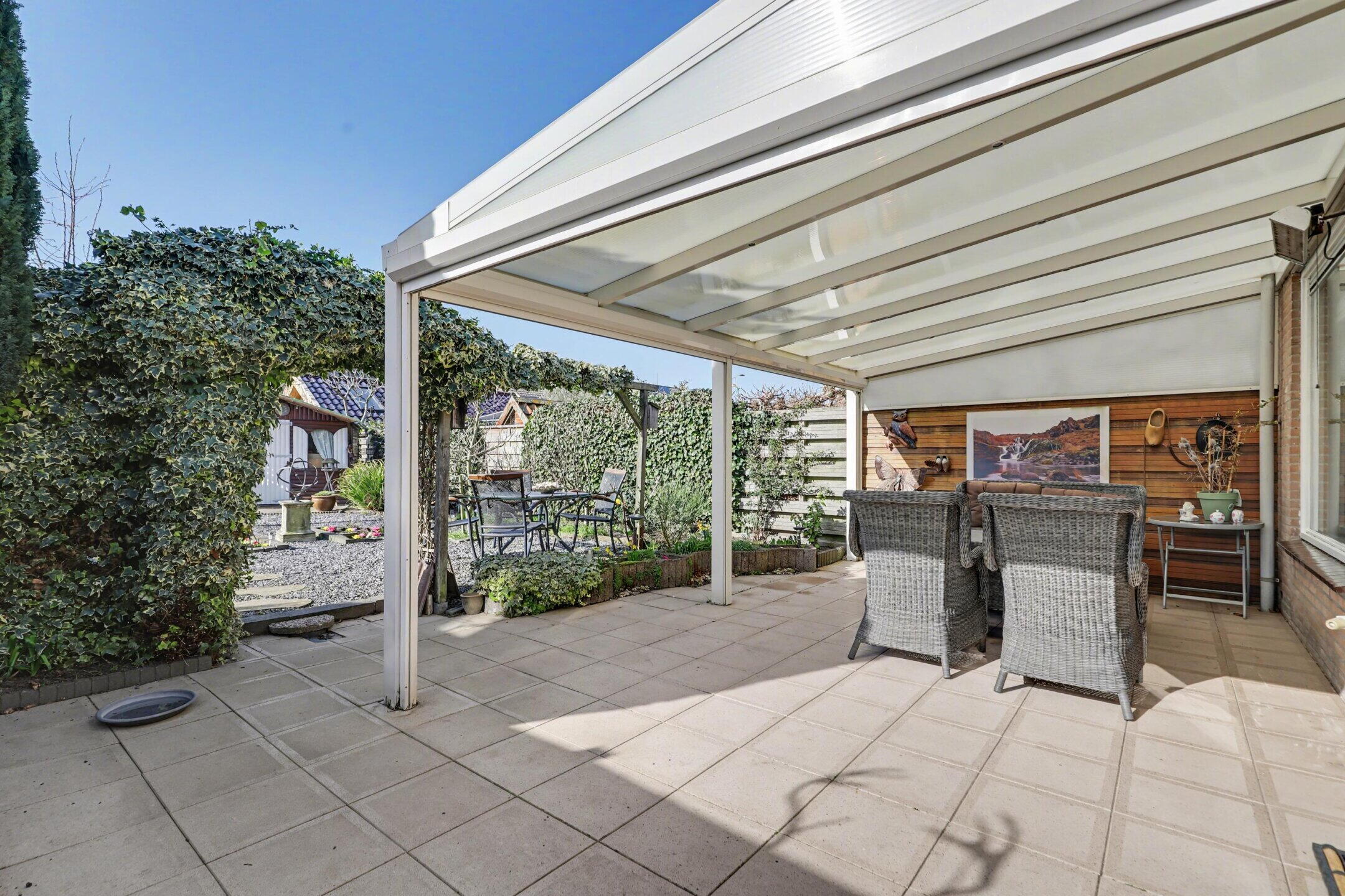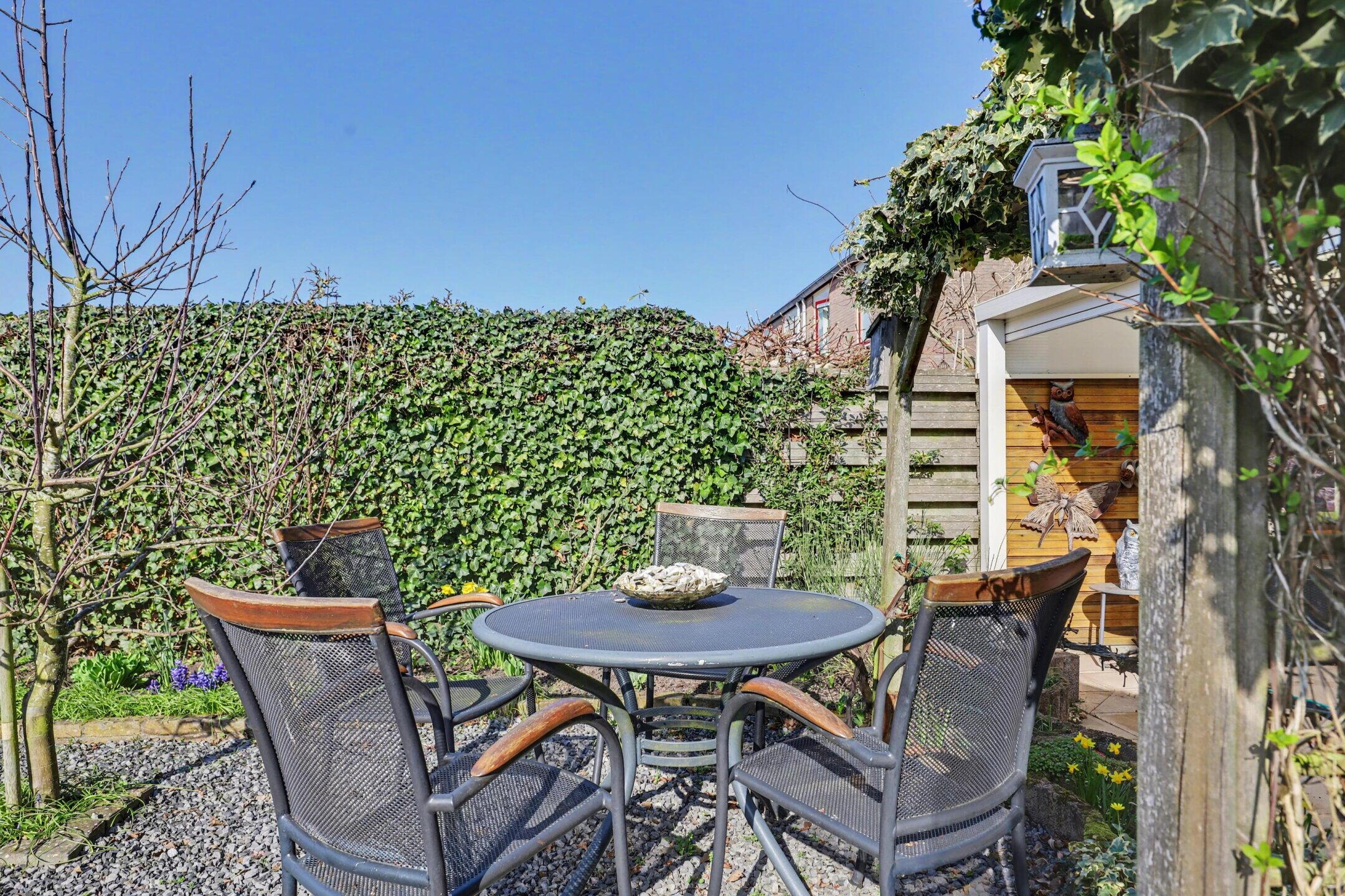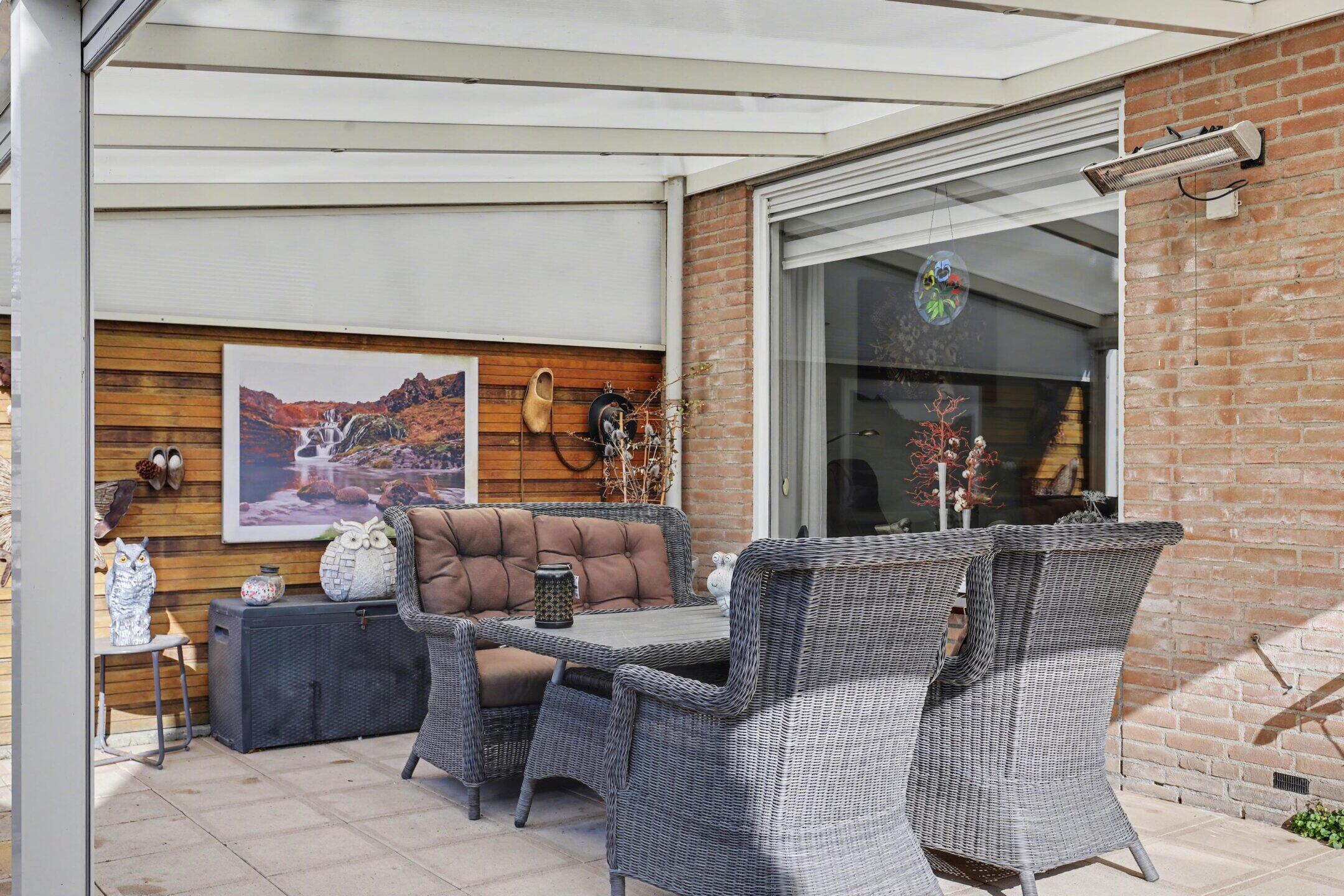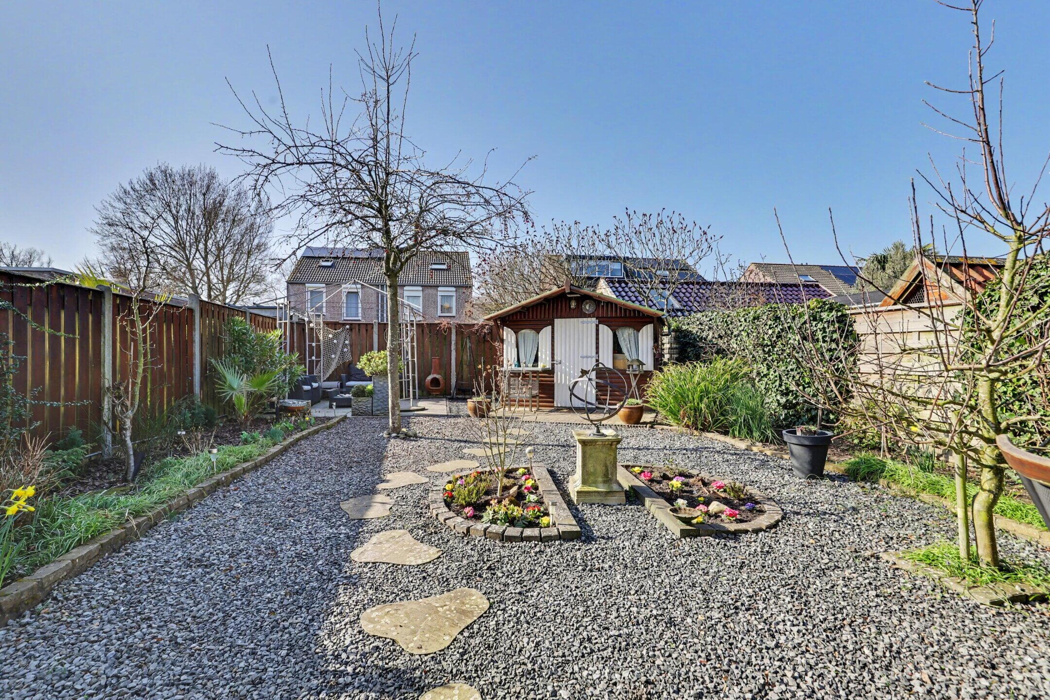 De zonnige en sfeervol aangelegde diepe achtertuin is voorzien van een fraaie overkapping, deze is afsluitbaar middels screens en tevens voorzien van een heater. Meer naar achteren staat de schuur en nog een terras, een heerlijke plek om te ontspannen.