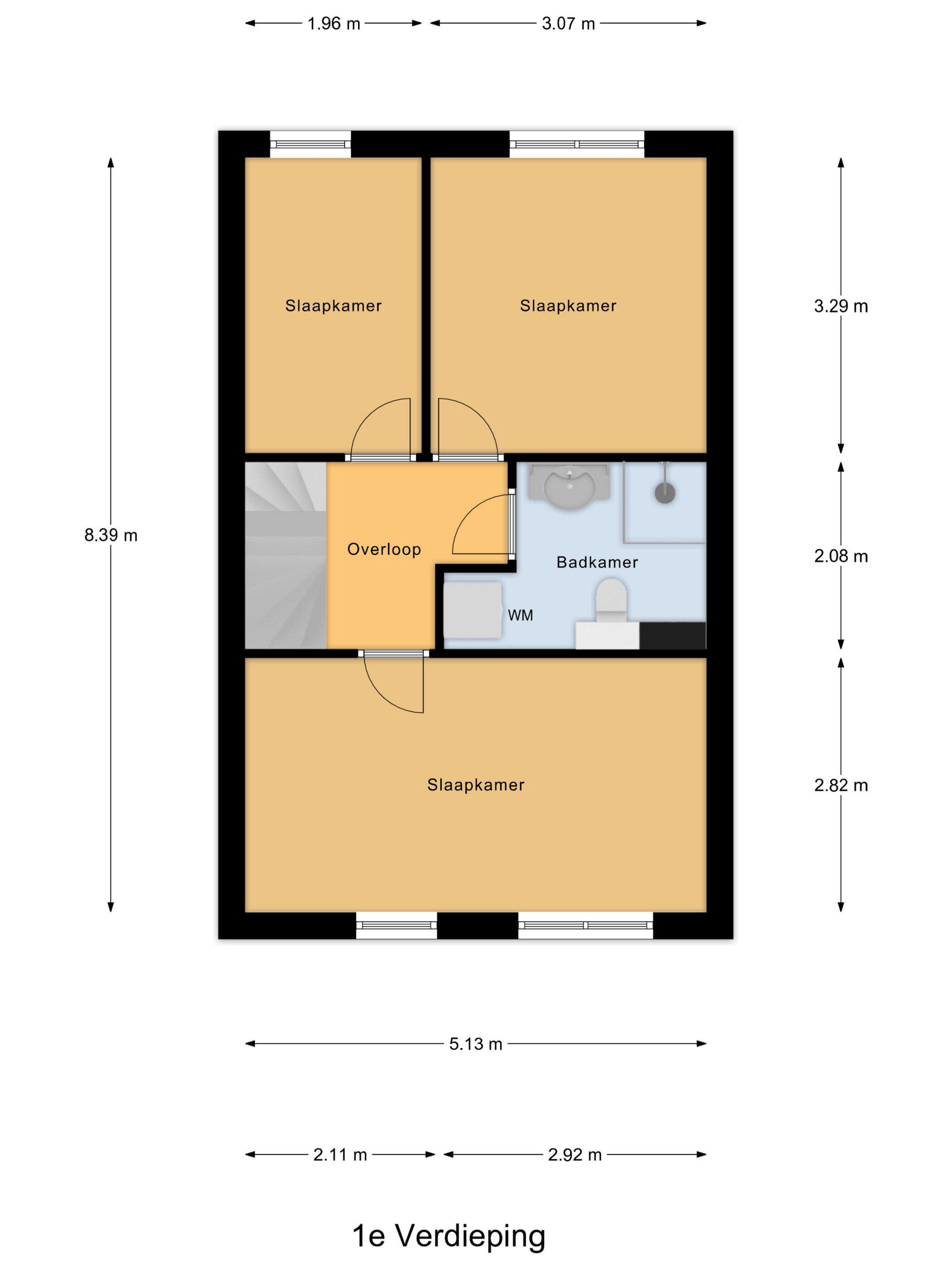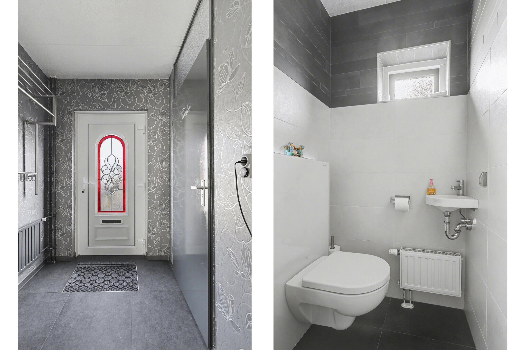 Eerste verdieping: overloop, 3 slaapkamers en badkamer met inloopdouche, handoekradiator, wastafelmeubel en 2e toilet.