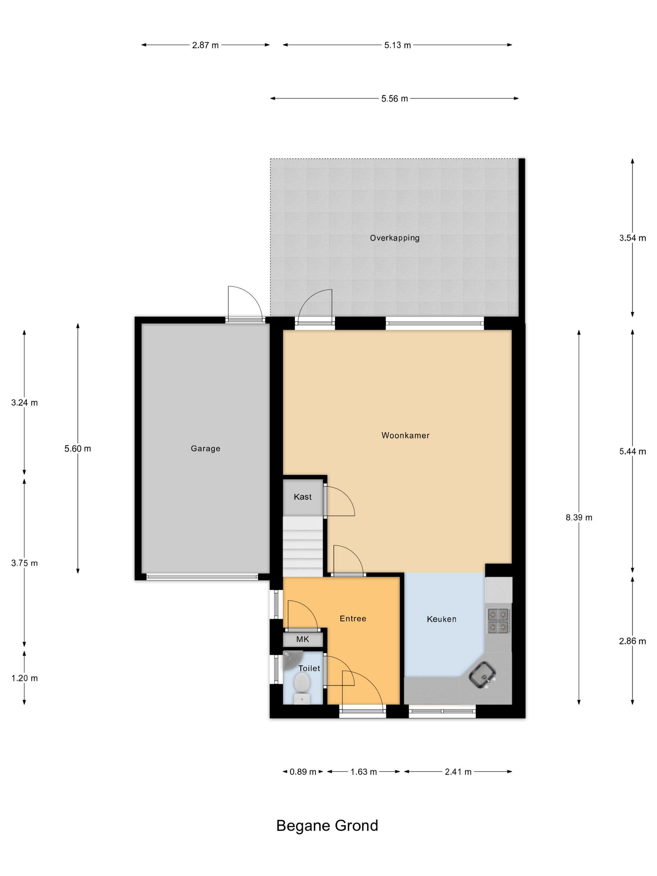 In de hal treft u de meterkast, het toilet en de trapopgang. Toegang tot de woonkamer met aan de voorzijde de open keuken voorzien van inbouwapparatuur. Een ruime en tuingerichte woonkamer met tuindeur naar het overkapte terras en de tuin. Via buiten bereikt u de garage, voorzien van loopdeur en keukenblokje met water en afvoer.